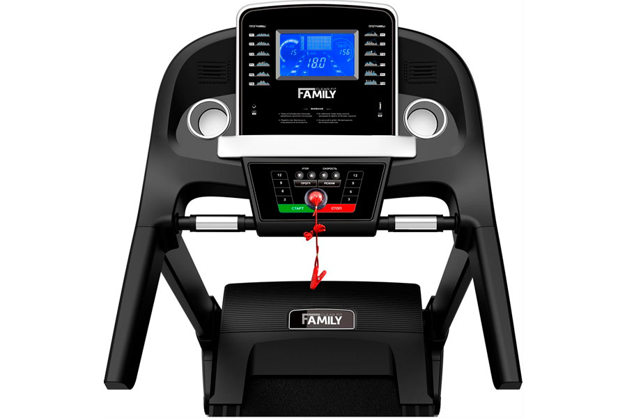 Беговая дорожка FAMILY TM 510A имеет автонаклон до 15%, изменить который можно во время движения. Измерение пульса осуществляется с помощью датчиков на рукоятках (там же имеются и клавиши быстрого доступа) либо беспроводного датчика пульса 5 кГЦ, подключаемого к модулю HRC.