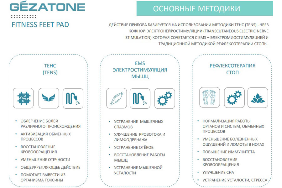Коврик для массажа ног Блаженство Gezatone сочетает в себе три методики воздействия на стопы: